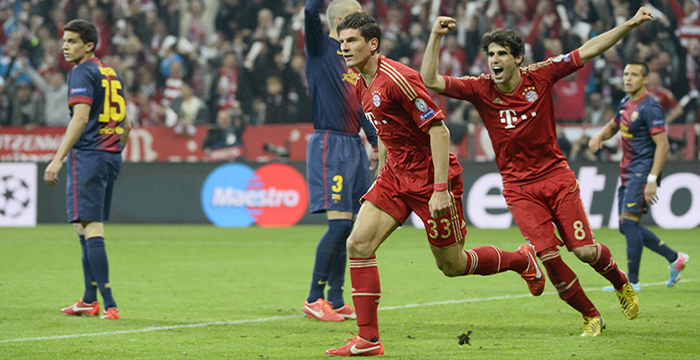 Во првиот дел Баерн Минхен иако имаше помал посед на топката, сепак беше поконкретен, а гостите од Каталонија речиси и да немаа посериозна шанса кон голот на Мануел Нојер. Таму каде што застана Баерн во првото полувреме, продолжи и во второто, но овојпат со поголем интензитет. По само четири минути игра, домаќинот го зголемува водството! Во една слична акција како при првиот гол, овојпат Милер асистираше до Гомез кој без проблем ја затресе мрежата на Валдес за 2-0.