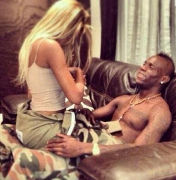 Девојката на Марио Балотели, белгиската манекенка Фани Негеша, на Инстаграм објавила фотографија на која седи врз фудбалерот, додека тој внимателно ја гледа.