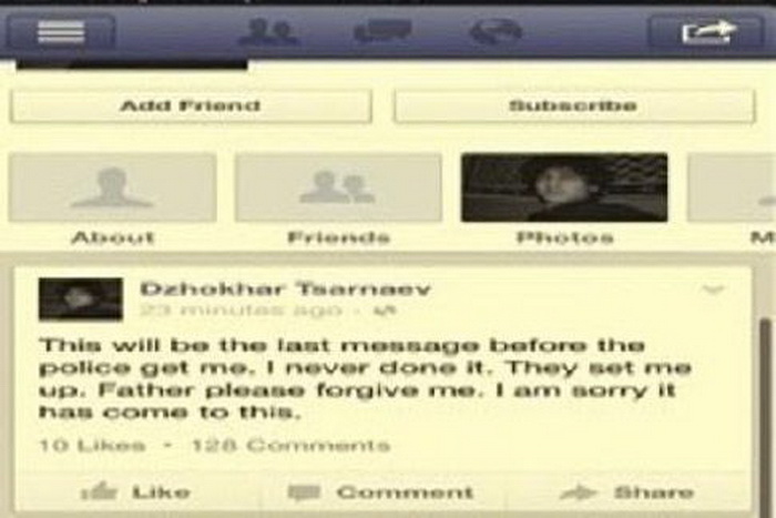 Светските медиуми ја пренесуваат последната порака на 19-годишниот Џохар Царнаев, обвинет за атентатот на маратонот во Бостон, која преку “Фејсбук“ му ја испратил на својот татко.