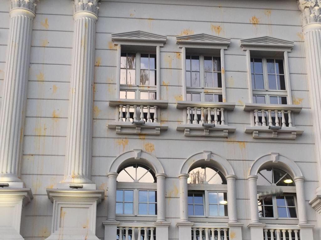 Во моментов, половина од знамињата истакнати пред Владата се спуштени на половина копје, а демонстрантите фрлаат цвеќиња пред полоцијата и ги повикуваат да ги фрлат штитовите и да се приклучат на протестот.