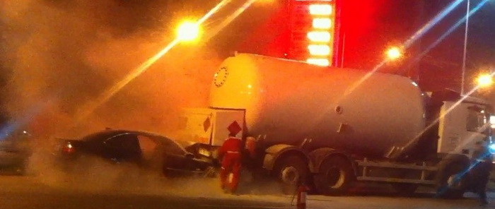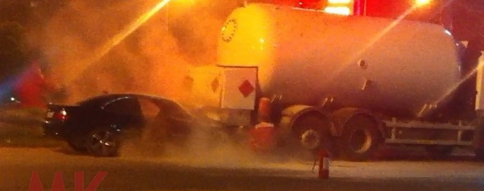 Од засега непознати причини автомобилот со голема брзина се забил во задниот дел на цистерната но вистинска среќа е што автомобилот не експлодирал бидејќи цистерната се наоѓала на самата бензинска, а во нејзина непосредна близина имало и други цистерни.
