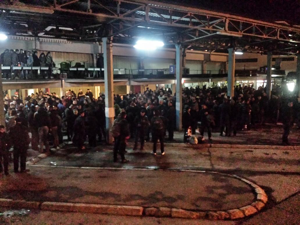 Фотографија од автобуската станица во Приштина вечерва. Повеќе луѓе заминуваат за Унгарија.
