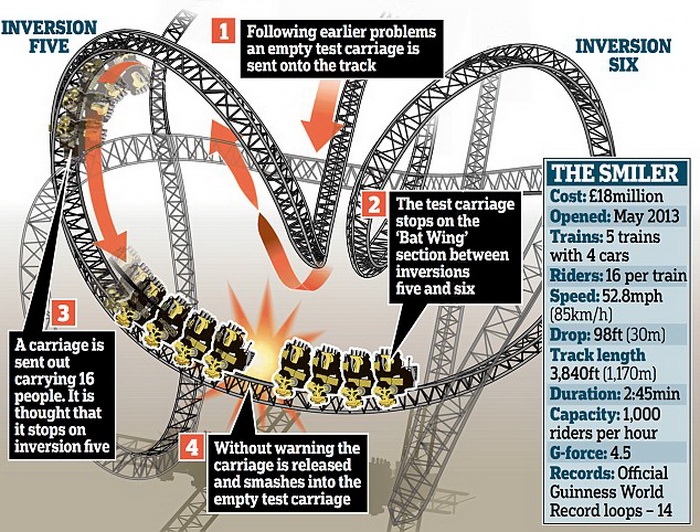 На ролеркостерот имало 16 лица, а инцидентот се случил на патеката која била блиску до земјата.