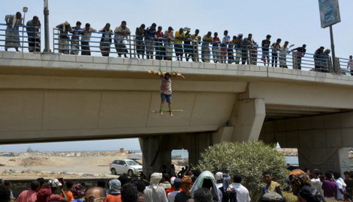 Терористите ги погубиле несреќните Саудијци, а потоа ги обесиле да висат од мост во јеменскиот град Мукали, пишува Reuters