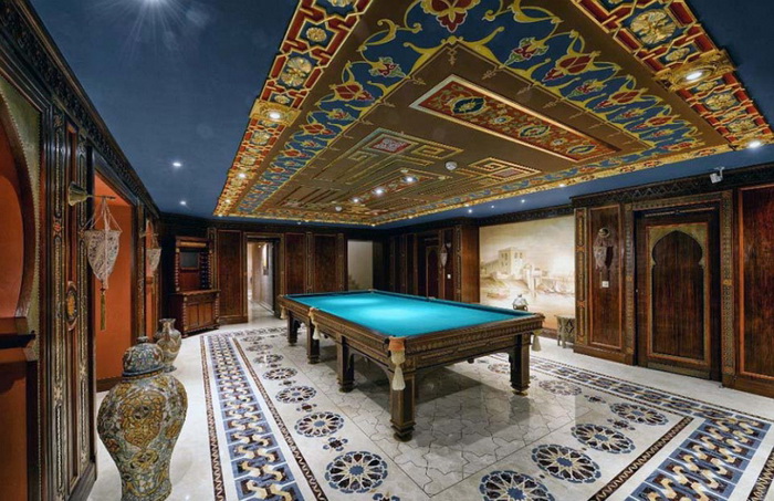 "Внатре во собата има многу злато, природен камен и квалитетно дрво. Во некои соби подот е обложен со природен мермер, додека собата за билјард и библиотеката се од махагонија", велат агентите.